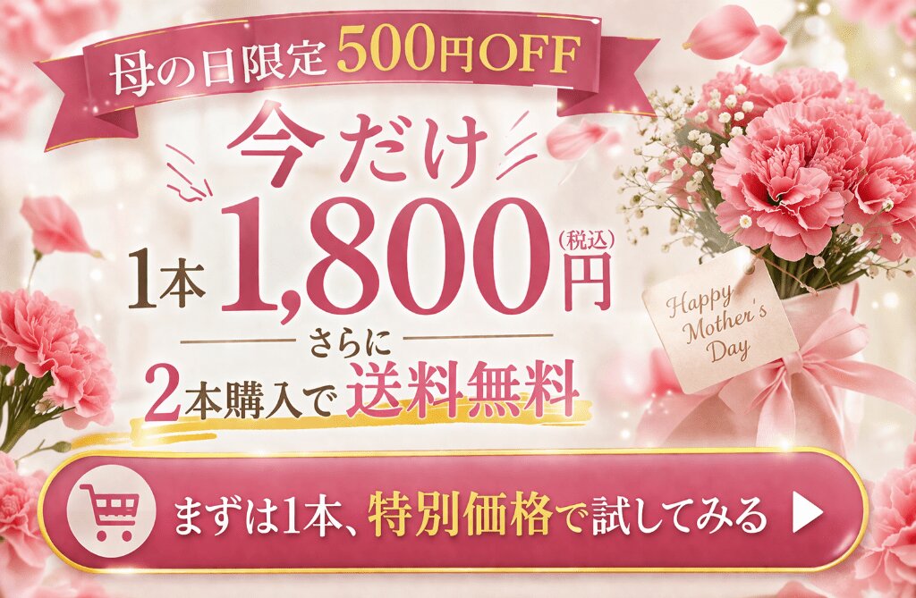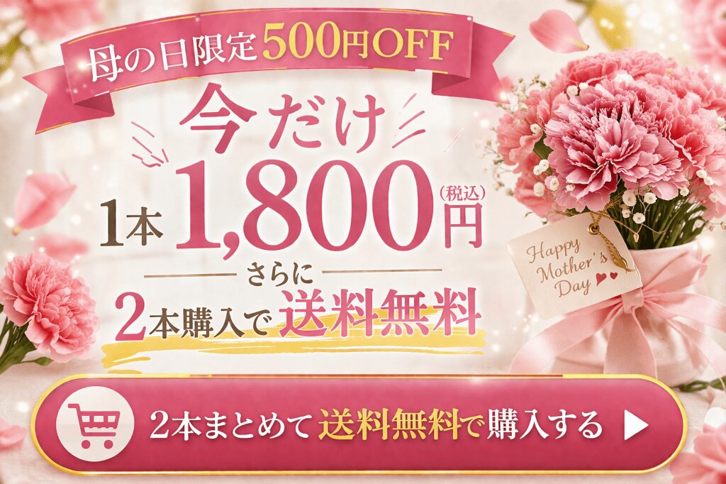まずは1本試したい方にも、2本まとめてお得に買いたい方にも選びやすい母の日企画です。