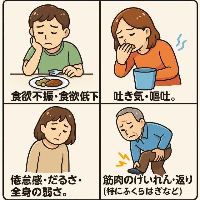 - 吸収不良・慢性下痢・アルコール多飲・腎機能低下・利尿剤の使用などにより “マグネシウムが失われやすい/吸収しにくい” 状況があると、症状が出やすくなります。